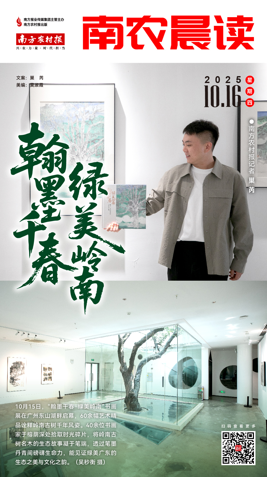 秋光潋滟,翰墨凝香。10月15日,“翰墨千春·绿美岭南——绿美广东岭南古树书画展”在广州市东山湖畔的溯·榭映美术馆正式拉开帷幕。该展览旨在通过艺术笔墨展现岭南古树的千年风姿,推动生态文明与文化艺术深度融合,为绿美广东生态建设注入人文情怀。详情>>>