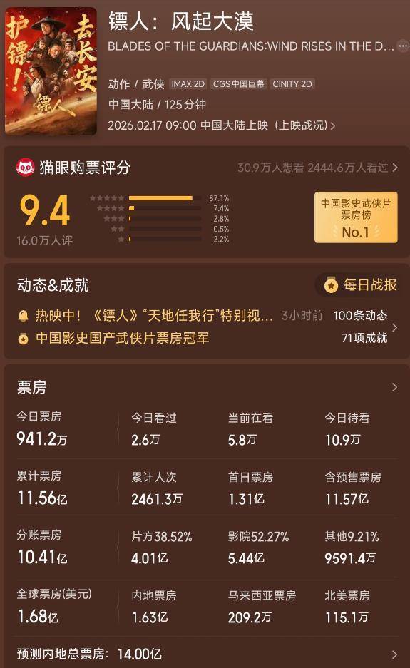 所以除了《镖人》之外,这些年许多同题材的作品都成绩一般,连徐克执导、肖战主演的《射雕英雄传:侠之大者》也不例外。